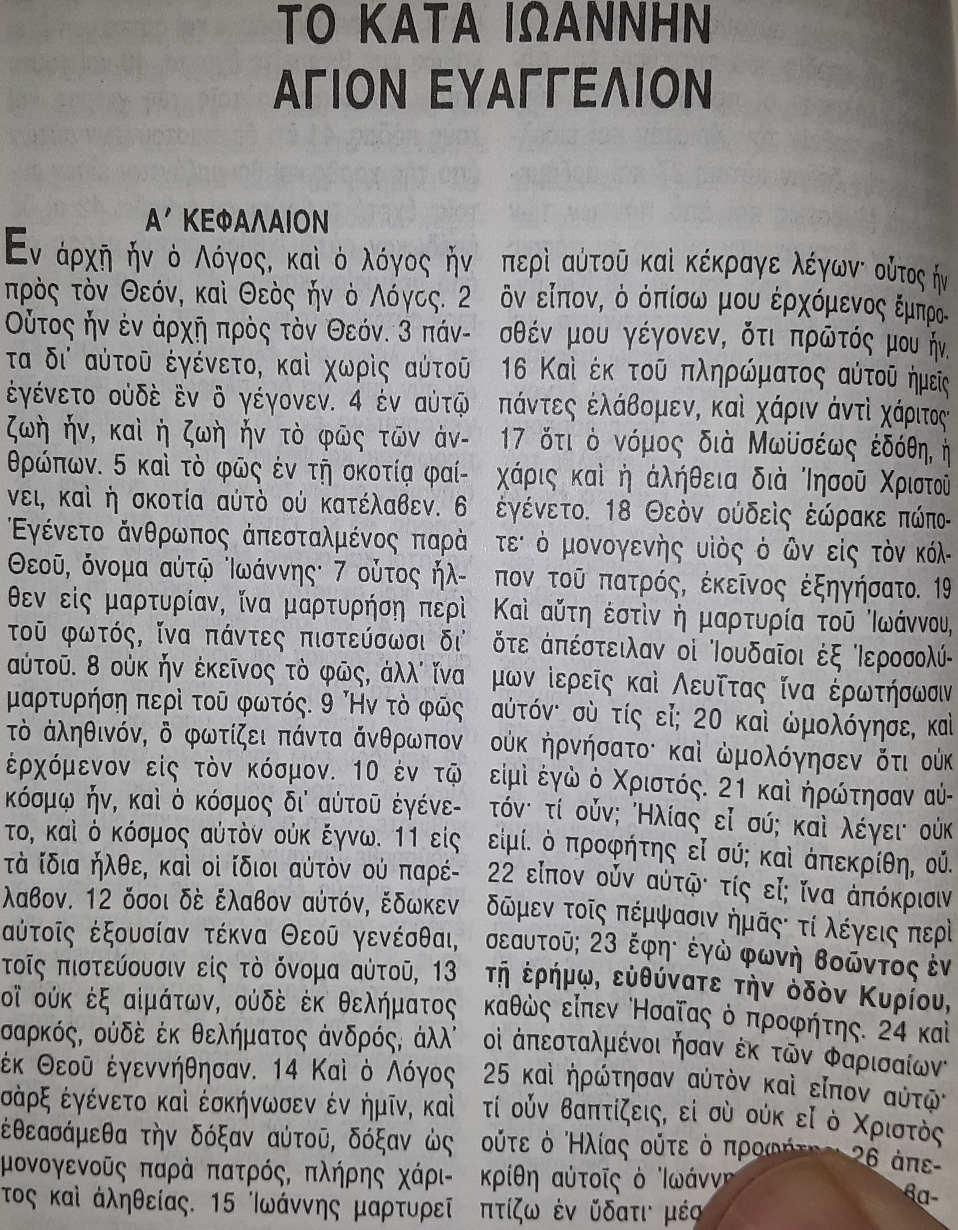 Several publishers in Greece offer shirt-pocket-sized editions of the Patriarchal Text of 1904, which is a Byzantine Majority-type text. These editions are available for sale at various websites in Greece, with varying degrees of ease in locating and purchasing the desired item. I imagine that others have found, as I have, that using a credit card for international purchases sometimes results in security issues that cause the card issuer to cancel it and replace it with a new card. So, though having to ship the item twice and needing at least a little something to compensate the time I spend in this work keeps me from being able to offer these testaments at prices much if any below what you can get them for directly from Greece, I can provide them with more convenience and security, as well as provide a lot of information here to facilitate choosing. That information includes links to sites in Greece where these testaments are for sale, for the sake of those who want to purchase directly from Greece. This is especially useful for buyers outside the US, for whom shipping rates from the US would raise prices well beyond the cost of buying directly from Greece.